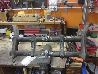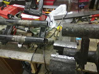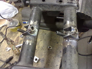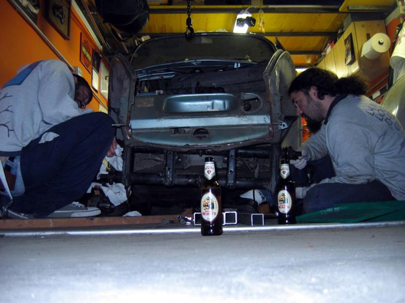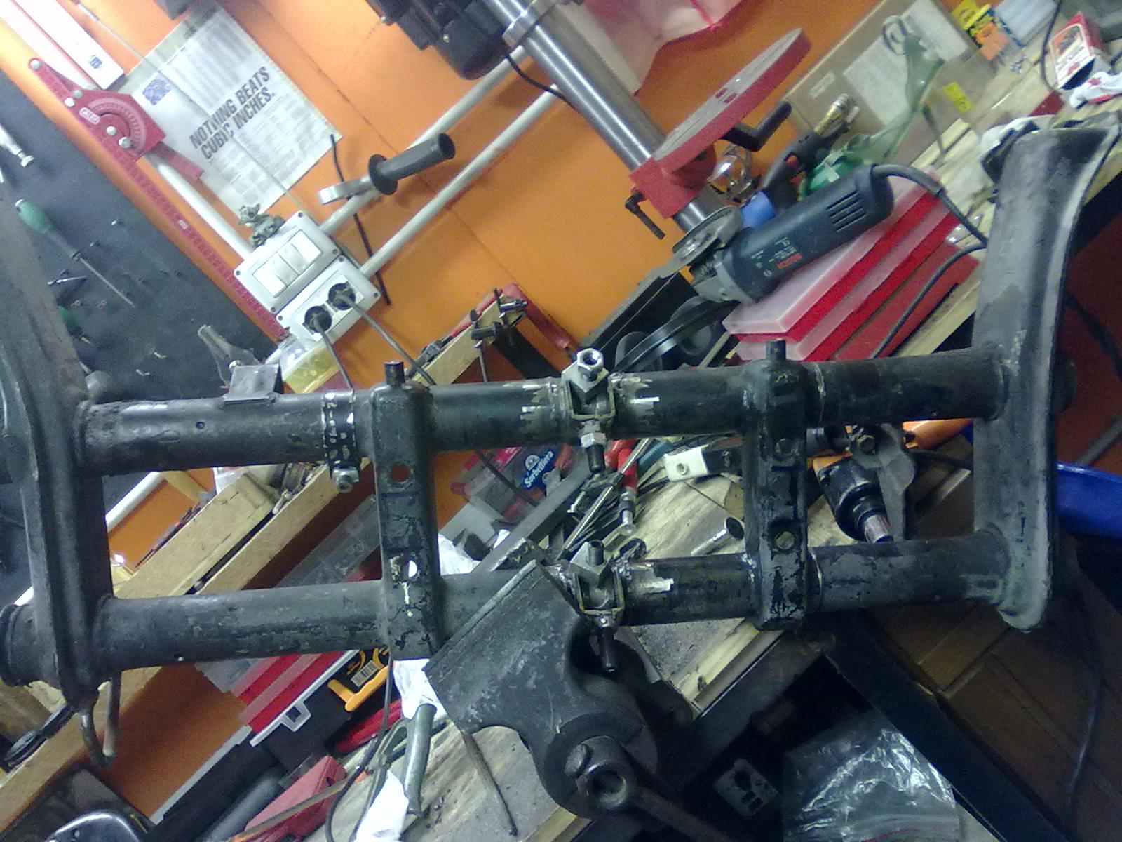 Tempo di preparare i rinvii dello sterzo accorciati e di dare due punti di saldatura all'avantreno arriva l'ora di una pausa... Ormai è quasi l'una...