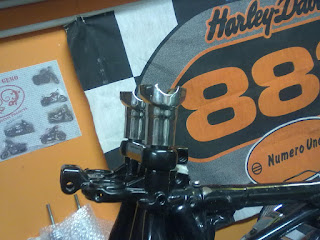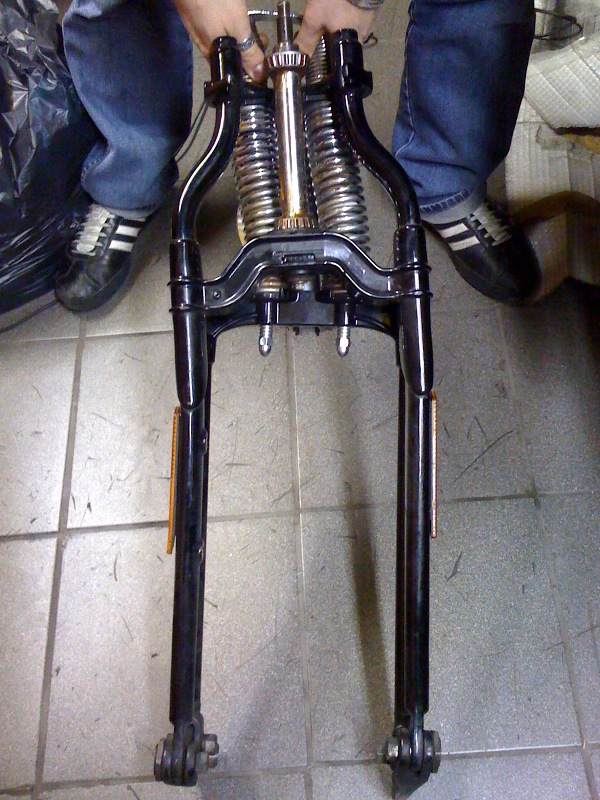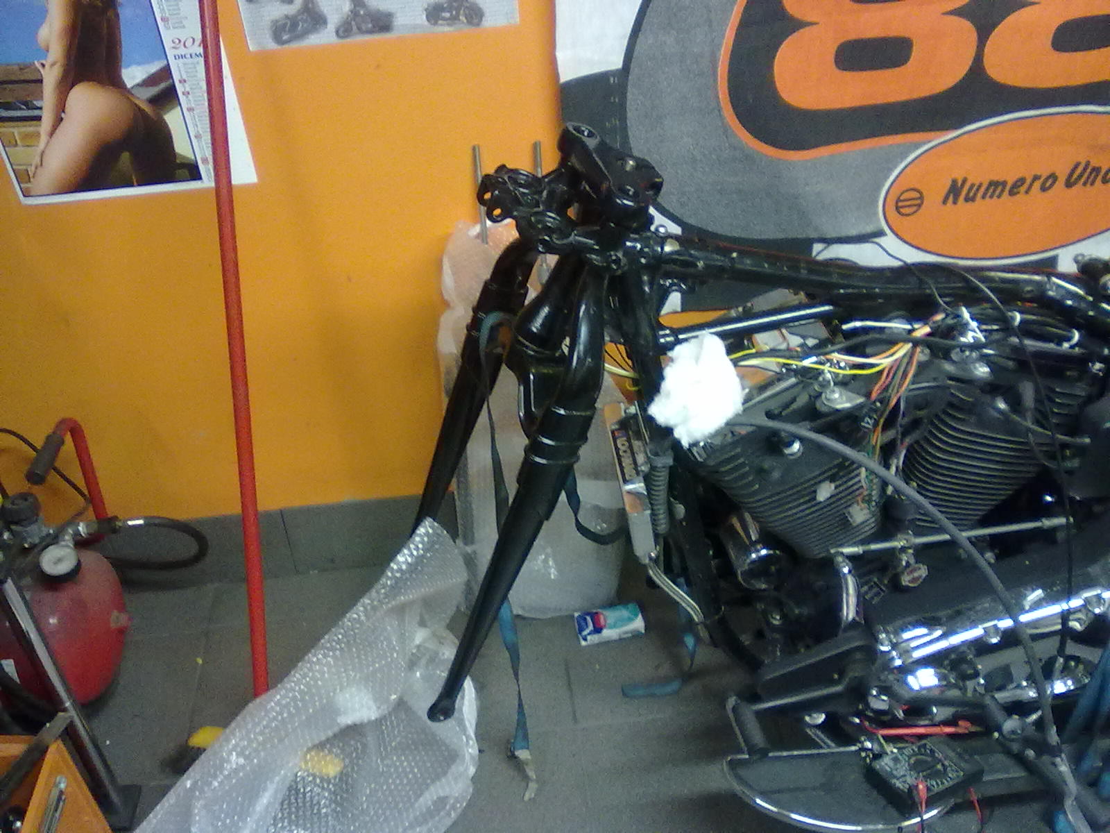 Ovvero la forcella di una springer classic 1450 dopo l'incontro con un furgone in retromarcia.