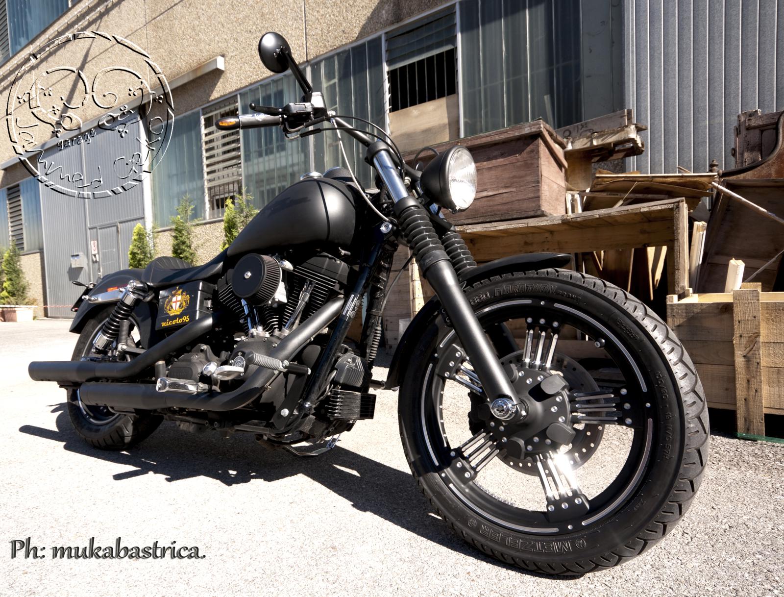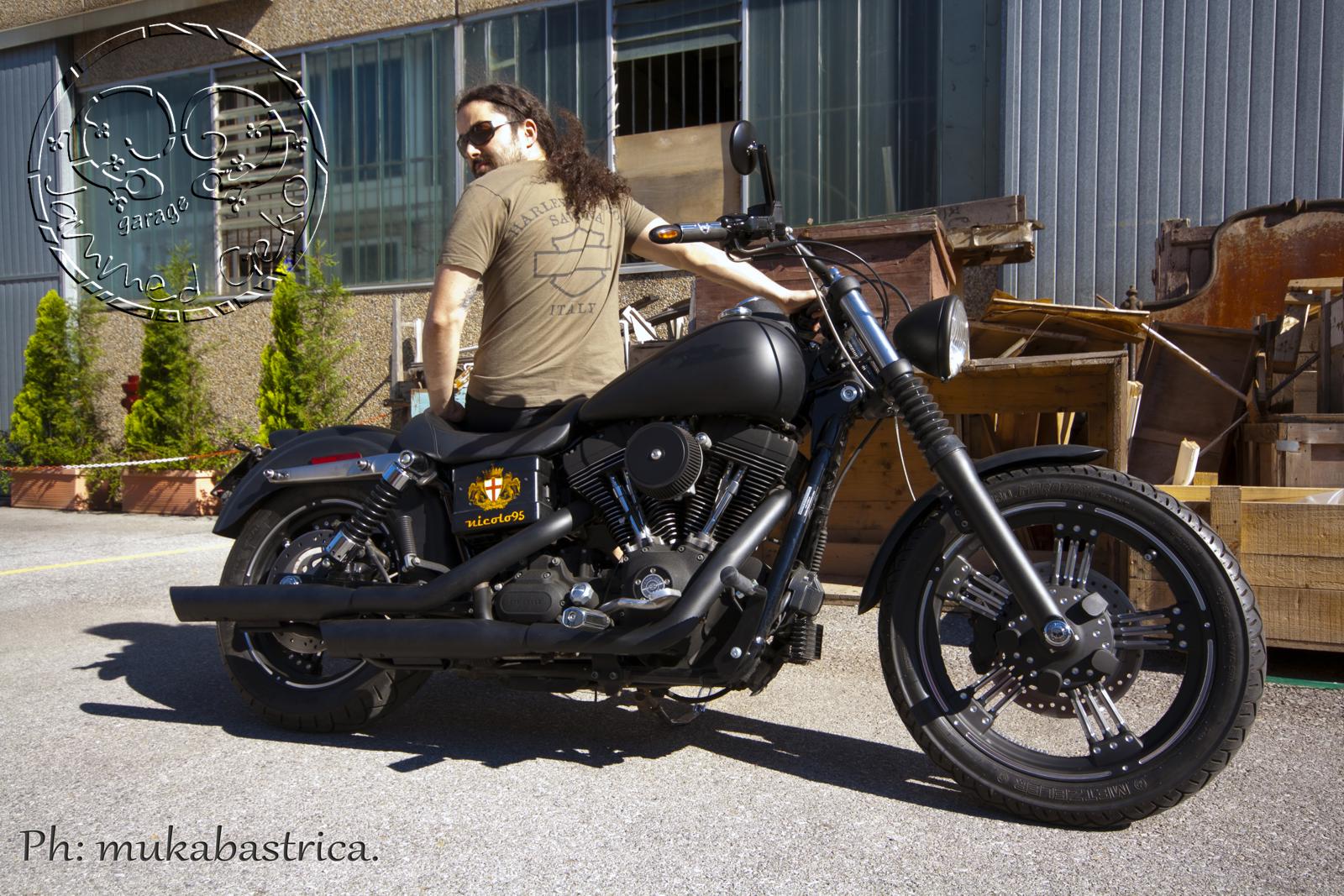 Cerchi nuovi, particolari verniciati a polvere in nero ruvido ed un classico manubrio "R" hanno fatto fare a questo dyna un salto di qualità.