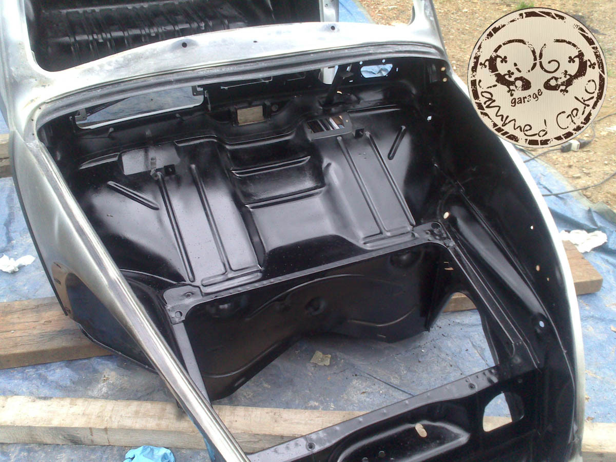 E lo fissiamo al fondo del Maggiolo, il telaietto rimarrà fisso imbullonato al telaio e permetterà di smontare i sedili facilmente in caso di necessità