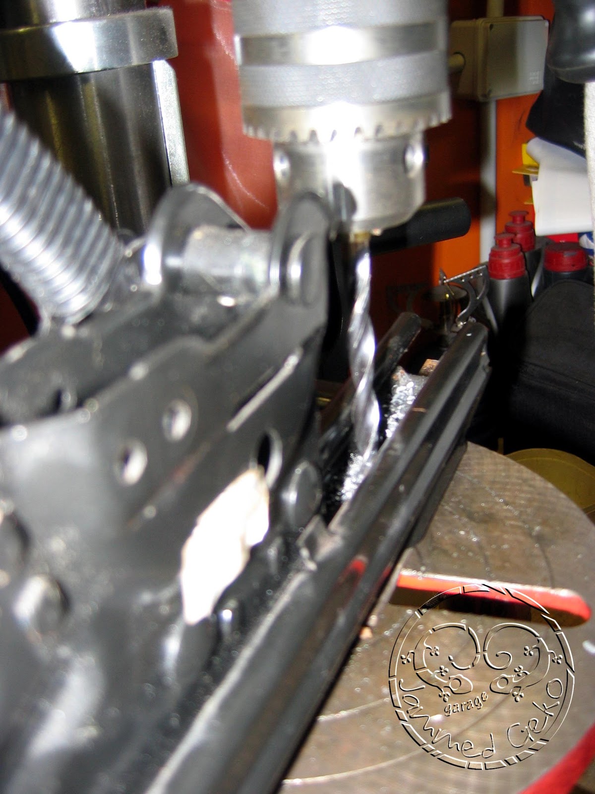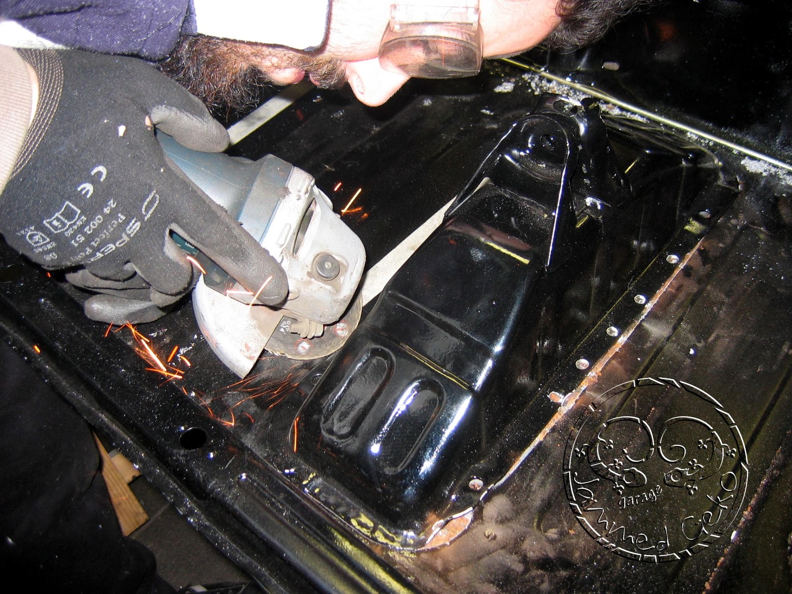 Nel frattempo eliminiamo la torretta saldata sui fondi originali, trapanando i punti di saldatura e molando i cordoncini.