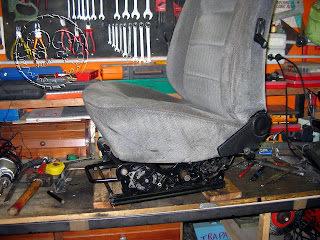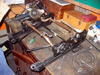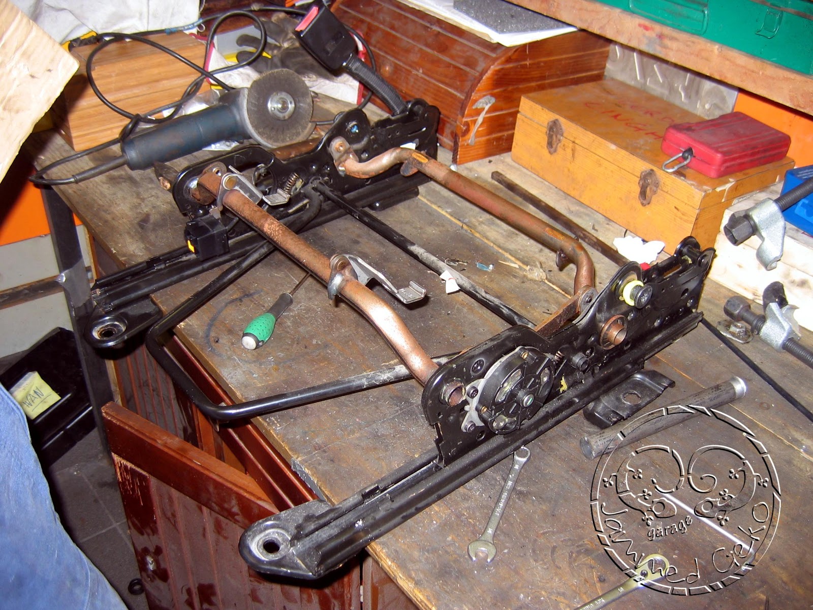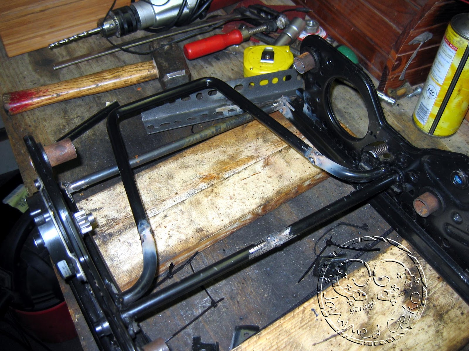 Dopo mille prove per essere certi che il sedile restasse nella stessa posizione dell'originale e con la stessa identica corsa tagliamo due barre e le saldiamo alle guide per tenerle in posizione.