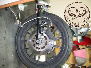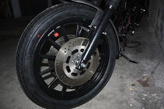 L'unica cosa su cui ho ancora qualche dubbio è l'avantreno, ma direi che la configurazione sarà questa, cerchio originale in lega con avantreno doppio disco e pinze Brembo.