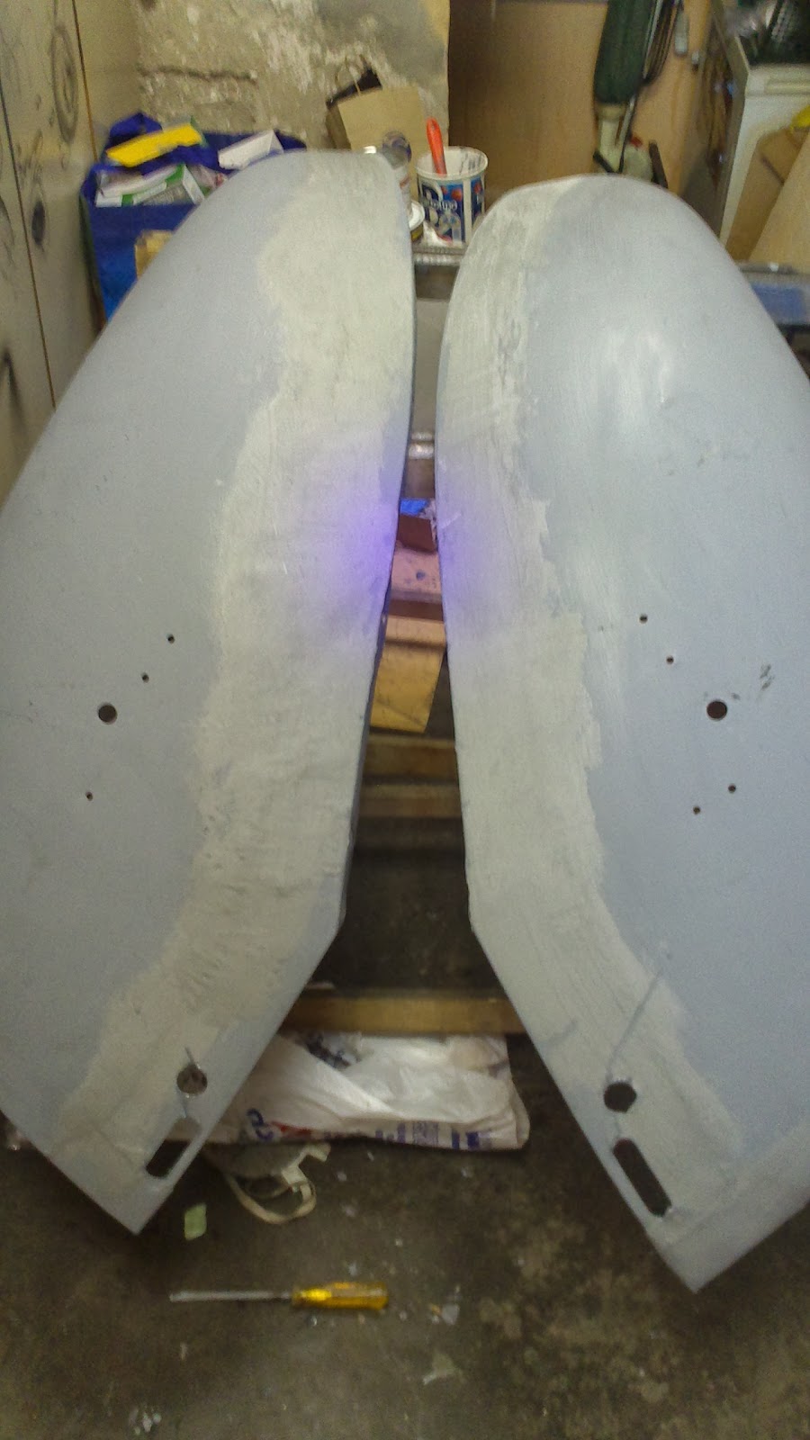 Finalmente la scocca è stuccata e coperta da una mano di fondo riempitivo, vederla tutta dello stesso colore è già un'emozione...